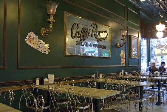 Photo by Ryan Monaghan For a sweet treat and cappuccino, try Caffe Roma on 385 Broome Street, an Italian Bakery that has bistro tables and a full case of Italian pastries.